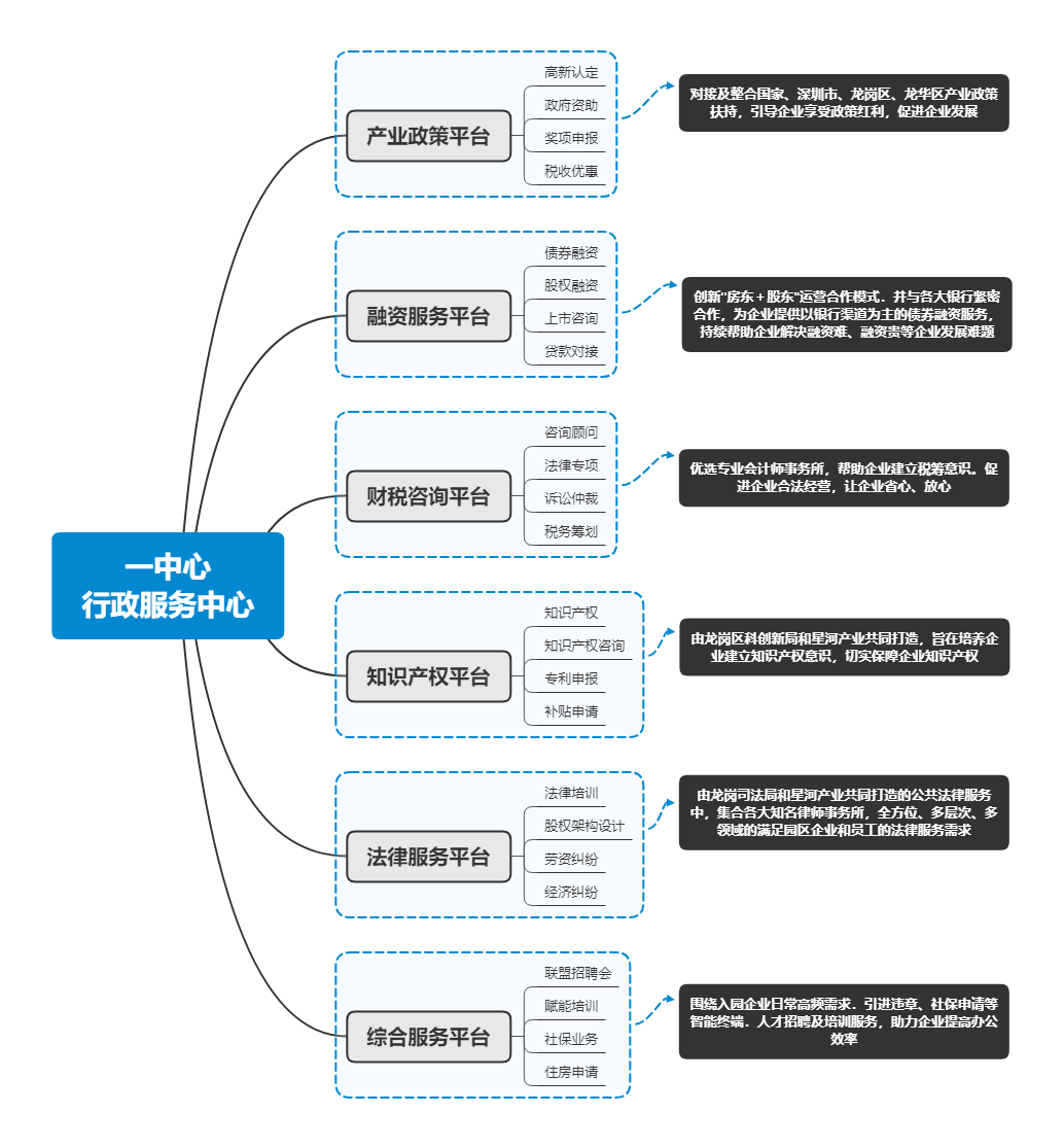 2022年以來,政策不斷加持下,建設認定一批“專精特新”產業(yè)園,加快“專精特新”企業(yè)集聚發(fā)展;支持“專精特新”產業(yè)園提升服務功能,鼓勵產業(yè)園區(qū)引進重點項目和企業(yè),培育和壯大重點產業(yè)集群已經成為國內部分城市推動“專精特新”企業(yè)集群集聚的一種選擇。如重慶兩江新區(qū)認定金泰產業(yè)園、大地企業(yè)公園等四個園區(qū)為為“專精特新”產業(yè)園等。 在此基礎上,一方面,產城運營商聚焦專精特新發(fā)展的關鍵領域和環(huán)節(jié),在園區(qū)運營服務層面構建專門面向專精特新企業(yè)的服務框架。如星河產業(yè)集團提出了“1+2+3”專精特新的服務模式?!?”是區(qū)域政府,包括國家的有關部門,在政策方向上進行方向指導;“2”是培育單位,星河產業(yè)集團聯合領軍企業(yè)研究院共同成立了專精特新的服務中心,通過研究院和星河產業(yè)集團做培育單位進行企業(yè)培育和招商運營?!?”是小巨人企業(yè),通過龍頭企業(yè)、小巨人企業(yè)的參與,構建產業(yè)協(xié)同、創(chuàng)新帶動的共建模式。與此同時,星河還搭建了“1+6”重點工程,加速專精特新企業(yè)集聚、成長、創(chuàng)新轉型。 另一方面,在政策指引下,不僅是企業(yè)在走向專精特新,園區(qū)運營商也在打造“專精特新”運營模式。其一,賽道專業(yè)化,園區(qū)運營商通過打造主題園區(qū),推動產業(yè)鏈上下游的中小企業(yè)規(guī)?;?,讓企業(yè)在產業(yè)生態(tài)中持續(xù)發(fā)展,建立穩(wěn)定可觀的供應鏈需求運營商配合集中投放資源,協(xié)同政府制定政策,讓企業(yè)獲得成本可控的長期供應鏈保障。其二,運營精細化,不斷加強園區(qū)服務的數字化、智能化管理,完善園區(qū)配套建設和服務體系,在延伸產業(yè)鏈條、形成產業(yè)集群、構建產業(yè)生態(tài)的同時提升運營商資產效率。其三,資源特色化,園區(qū)運營商基于園區(qū)產業(yè)基礎、自身資源稟賦、區(qū)域市場擴張能力聚焦細分領域打造自身核心業(yè)務優(yōu)勢。如微醫(yī)集團結合“互聯網+醫(yī)療健康”業(yè)態(tài),打造互聯網健康醫(yī)療小鎮(zhèn),覆蓋“全科+???、線上+線下”的醫(yī)療健康服務體系。其四,服務創(chuàng)新化,運營商搭載數字化等新興技術賦能園區(qū)運營管理,通過打造智慧園區(qū)平臺帶動管理模式創(chuàng)新、通過REITs等投融管退模式打通輕重資產循環(huán),創(chuàng)新商業(yè)模式等。深圳·星河雙子塔:依托深圳·星河WORLD產融大城,搭載全方位服務及配套 3月底,“融合共生 向新而行”中國最高等高雙子塔全球發(fā)布會在深圳·星河WORLD舉行。深圳·星河雙子塔作為深圳·星河WORLD產融大城升級力作,于深圳中軸之上,乘160萬m2超級灣區(qū)都會之勢,打造369米中國最高等高雙子塔。深圳·星河WORLD是集產業(yè)、商務、居住、教育、購物、休閑等多種業(yè)態(tài)配套的產融新城,園區(qū)占據福田CBD、深圳北站商務區(qū)和坂雪崗科技城三角鼎立優(yōu)勢區(qū)位,定位“園區(qū)+金融”雙閉環(huán)總部基地。目前已聚集超1200家企業(yè),其中世界500強26家、上市企業(yè)46家,134家國高企業(yè),形成新一代信息技術、高端裝備制造、文化創(chuàng)意、生命健康、科技金融五大產業(yè)集群,預計雙子塔建成后整個園區(qū)將提供超7.5萬就業(yè)崗位。 產業(yè)、企業(yè)、人才的發(fā)展離不開良好的營商環(huán)境,為提升產業(yè)競爭力,助推企業(yè)全生命周期成長,星河產業(yè)以聯盟共享理念為核心,以資源運作為抓手,以平臺生態(tài)圈建設為宗旨,與入駐企業(yè)、合作伙伴、地方政府等共建全方位產業(yè)運營服務體系,實現多方共生、共贏。依托星河強大的綜合業(yè)務板塊協(xié)同,星河超級企業(yè)服務中心通過打造“一中心六平臺”的服務體系,以產業(yè)服務為核心、物業(yè)服務為基礎、商務及配套服務為支點,致力于締造全方位多層次的高端智慧服務。該服務體系涵蓋了279項服務、逾300人服務團隊、“1234”響應機制、24小時服務終端等內容,已累計服務企業(yè)逾1300家次,協(xié)助逾700家企業(yè)開展申報工作、服務企業(yè)員工超10000次。