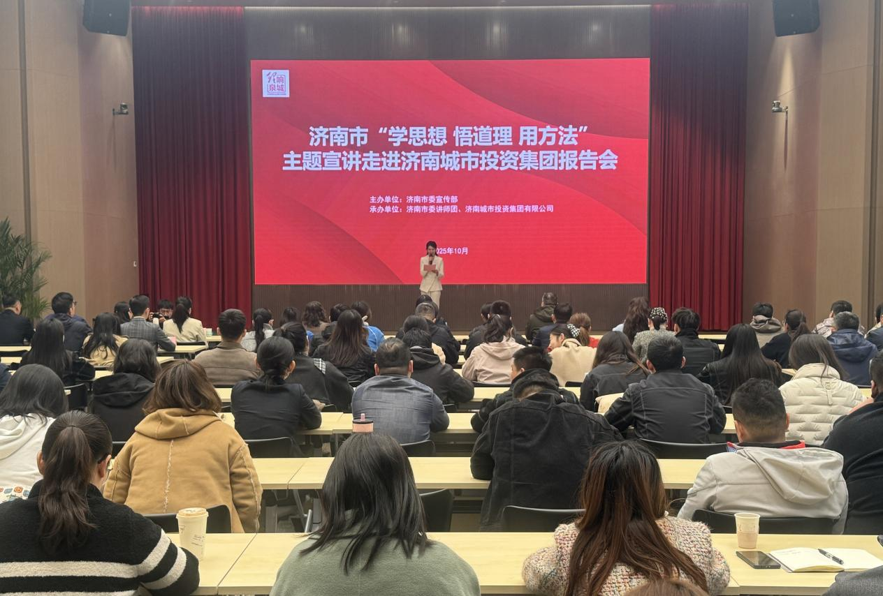 為深入學(xué)習(xí)貫徹習(xí)近平新時(shí)代中國(guó)特色社會(huì)主義思想,廣泛培育和踐行社會(huì)主義核心價(jià)值觀,扎實(shí)推動(dòng)黨的創(chuàng)新理論“飛入尋常百姓家”,10月28日下午,濟(jì)南市委講師團(tuán)團(tuán)長(zhǎng)劉健、副團(tuán)長(zhǎng)呂桂紅帶領(lǐng)“學(xué)思想 悟道理 用方法”主題宣講團(tuán)走進(jìn)濟(jì)南城投集團(tuán)。集團(tuán)各所屬企業(yè)宣傳部門負(fù)責(zé)人、新發(fā)展黨員及宣講骨干共130余人參加活動(dòng)。