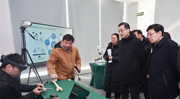 在山東省腫瘤醫(yī)院重離子硼中子項目,劉強實地察看了項目建設(shè)進展,詳細了解中核粒子等項目招引情況,強調(diào)要堅持高標(biāo)準(zhǔn)建設(shè)、高水平運營,確保項目早建成、早投用。在醫(yī)療硅谷,劉強詳細了解片區(qū)項目引進落地情況,指出要強化統(tǒng)籌規(guī)劃與產(chǎn)業(yè)協(xié)同,加快形成“醫(yī)、研、產(chǎn)、服”一體化發(fā)展格局。在南北三號路涉鐵段項目,劉強實地察看工程進展,要求加快打通斷點堵點,提升區(qū)域交通建設(shè)管理水平。在精準(zhǔn)醫(yī)學(xué)產(chǎn)業(yè)園,劉強察看中韓醫(yī)療服務(wù)產(chǎn)業(yè)合作平臺建設(shè)進展,強調(diào)要聚焦前沿醫(yī)學(xué)技術(shù)攻關(guān)與產(chǎn)業(yè)化融合,切實將科技優(yōu)勢轉(zhuǎn)化為產(chǎn)業(yè)發(fā)展動能。在錦瑟醫(yī)療和強腦科技項目,劉強實地了解腦機接口等前沿技術(shù)的研發(fā)應(yīng)用進展,強調(diào)要支持企業(yè)與醫(yī)療機構(gòu)深化合作,推動產(chǎn)業(yè)鏈上下游協(xié)同聯(lián)動。